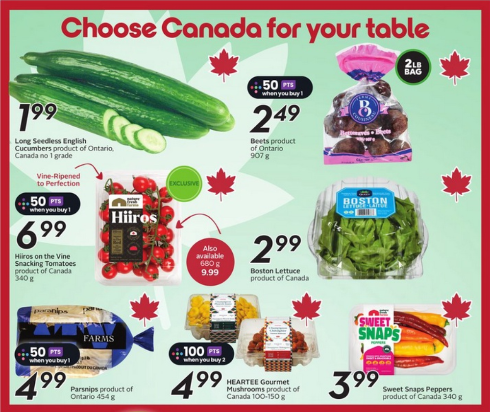 Sobeys Flyer Weekly Sales 14 April 2025 offers unbeatable value on fresh Canadian produce to brighten your table and boost your meals. Firstly, enjoy the crisp freshness of Long Seedless English Cucumbers at only $1.99 each, ideal for salads or healthy snacking. Furthermore, the sweet and earthy taste of Beets (2 lb bag) is yours for just $2.49, perfect for roasting or juicing. Don’t miss out on Hiros on the Vine Snacking Tomatoes (340 g) for $6.99, a convenient and delicious snack packed with flavour. Shopping at Sobeys means quality and savings go hand-in-hand. Above all, the Boston Lettuce (Canada) for only $2.99 each makes the freshest base for all your spring salads.